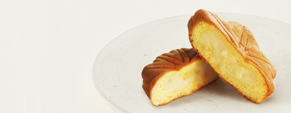 角切りりんごをチーズクリームに練り込んだもみじ饅頭。りんごの食感とチーズの風味をお楽しみください。