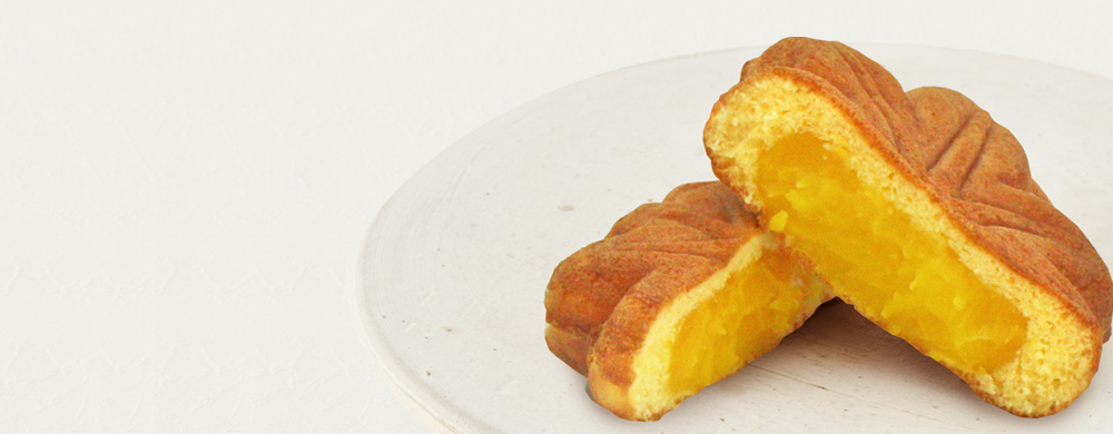 ほっこりした甘味のクリーミーなかぼちゃクリームを使用した、期間限定もみじ饅頭。