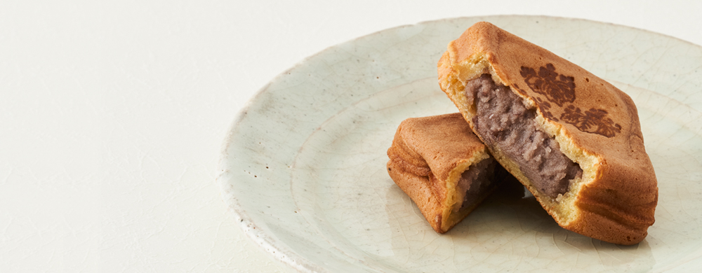 もち粉の生地で外側を包み込んでもちもちっとした食感に焼き上げました。こし餡と粒餡の合せ餡は小豆の風味を最大限に生かしています。