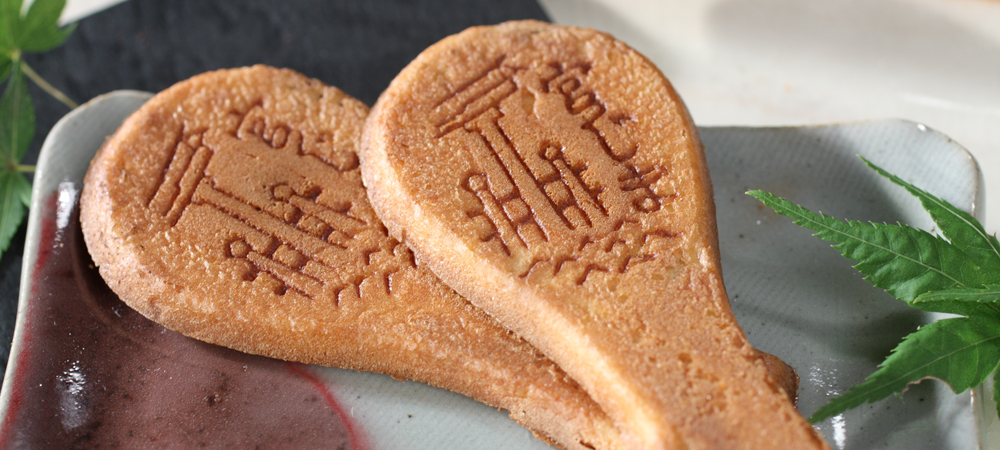 「敵をメシ取る」という縁起物の宮島特産杓子。素朴な風味のおせんべいです。